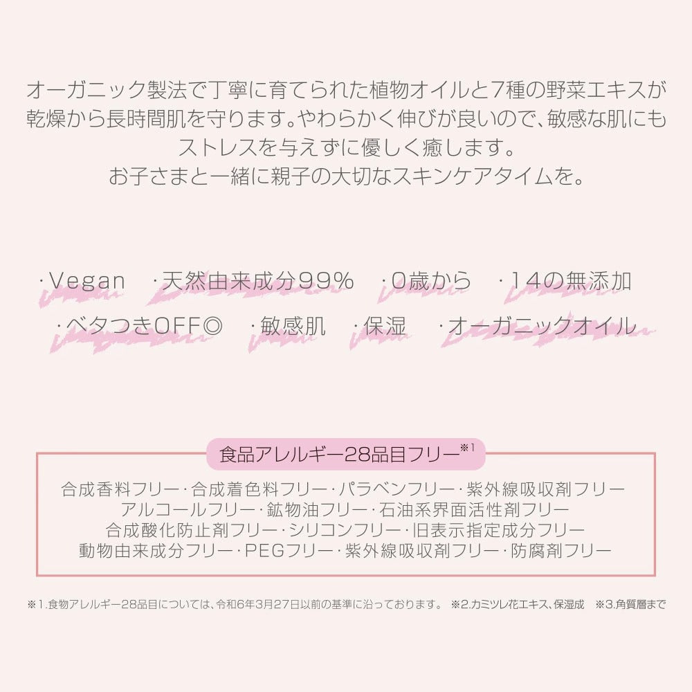 オーガニック製法で丁寧につくられた高保湿の植物オイルに加え、高純度の植物エキスをたっぷりと配合。