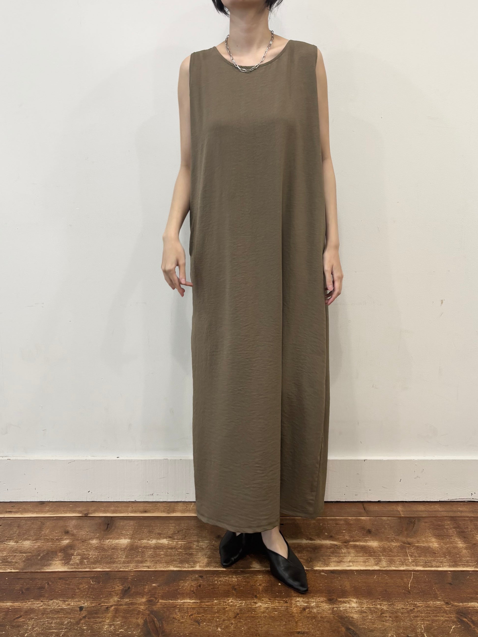 通常のコットンのカットソーにはないデシンのような表情の素材が特徴のロングワンピースです。