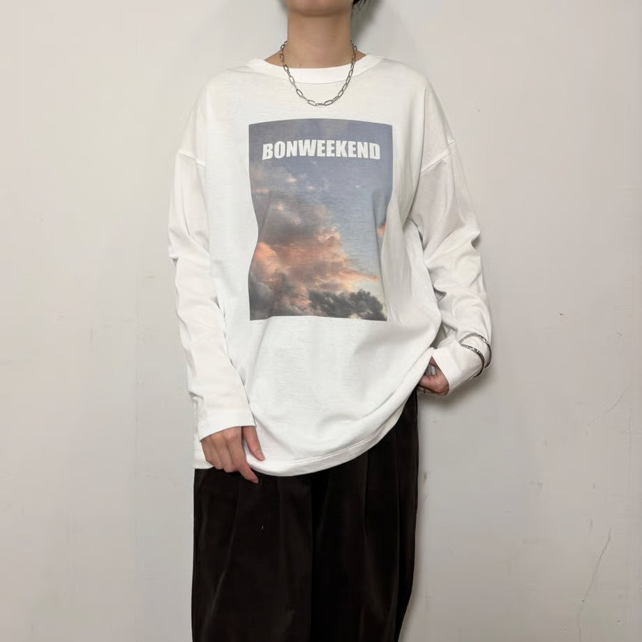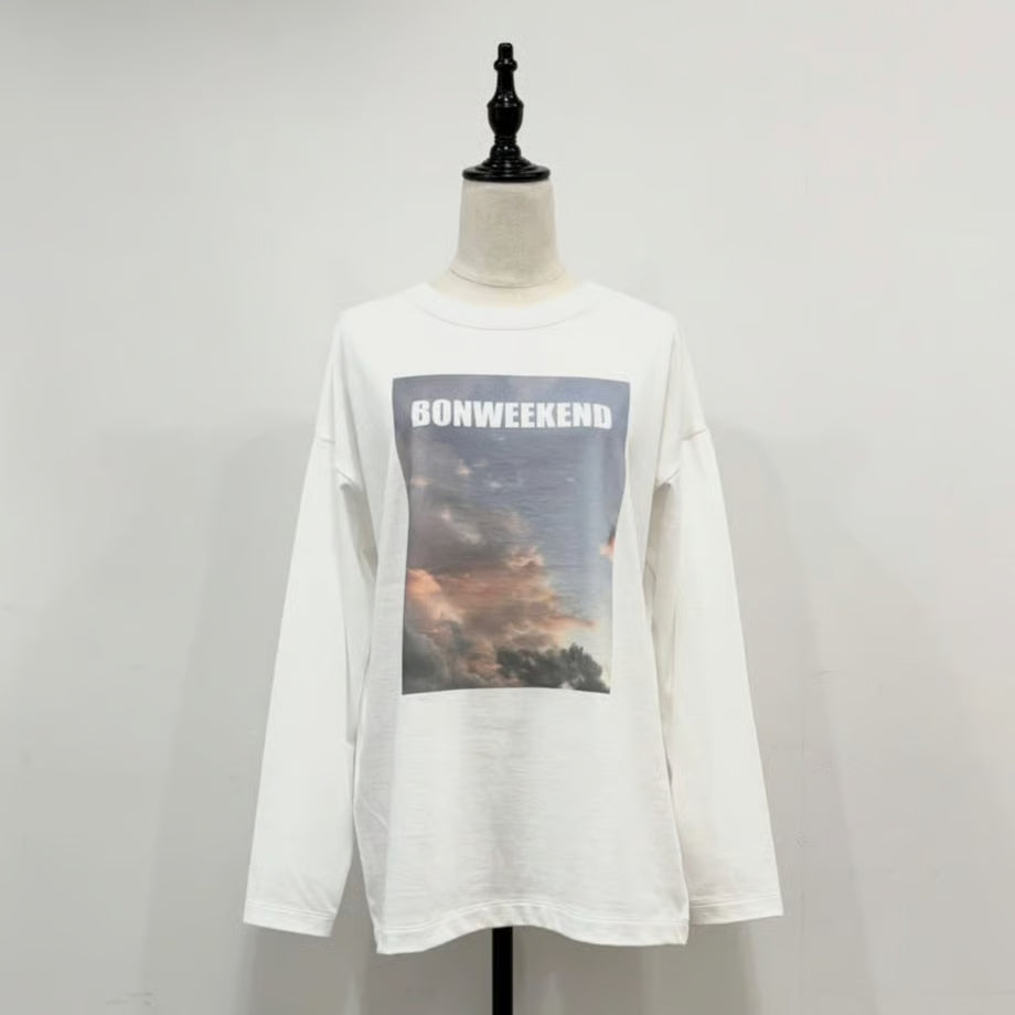 空をテーマにしたアートデザインが特徴のフォトプリントTシャツ。