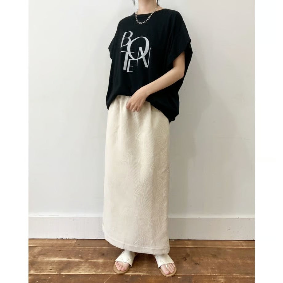 裾にかけてややコクーンシルエットにすることでパンツやスカート、様々なボトムスに合わせやすくなっています。