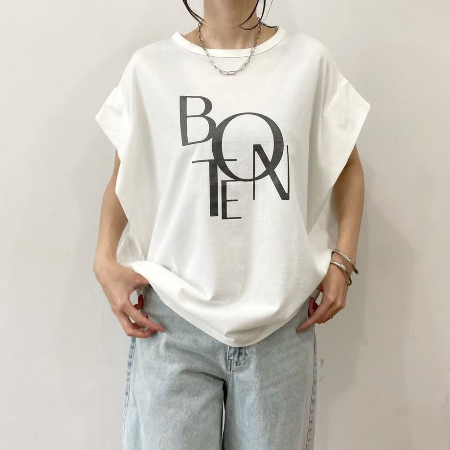 袖部分をタックにすることで、二の腕をカバーすることができるフレンチスリーブのデザインTシャツ。