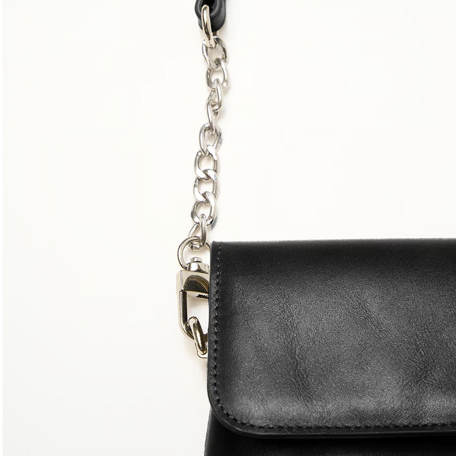 ベルト部分にチェーンとレザーをMIX使いしたポーチです。