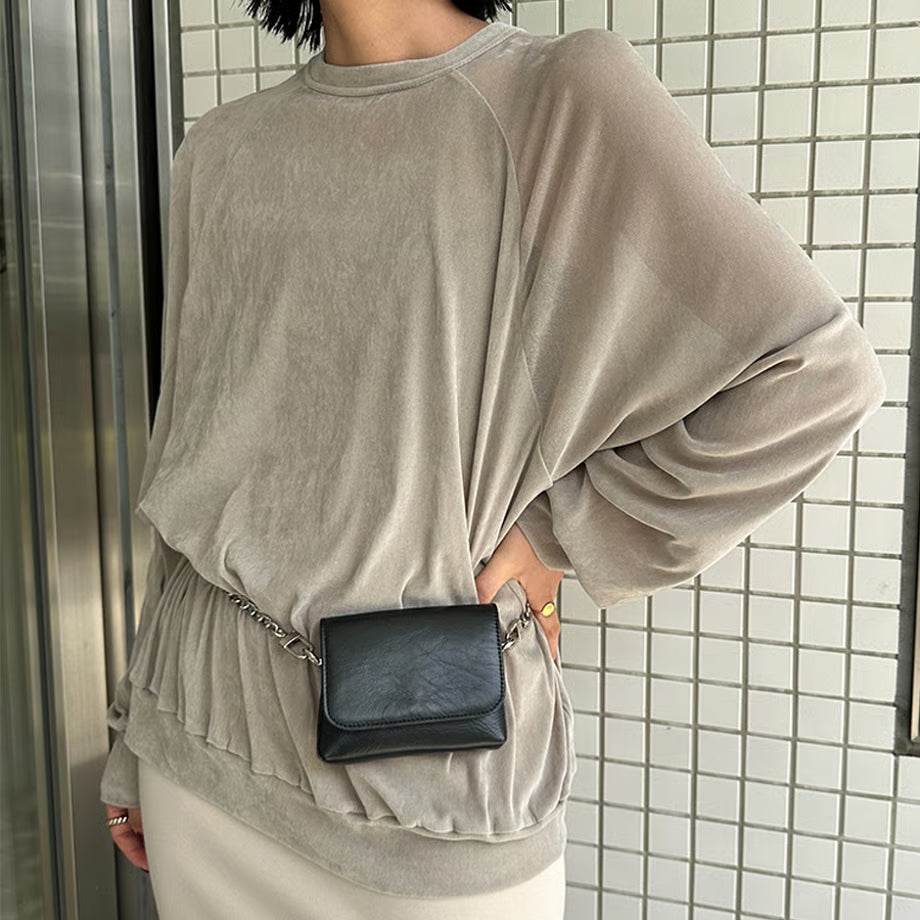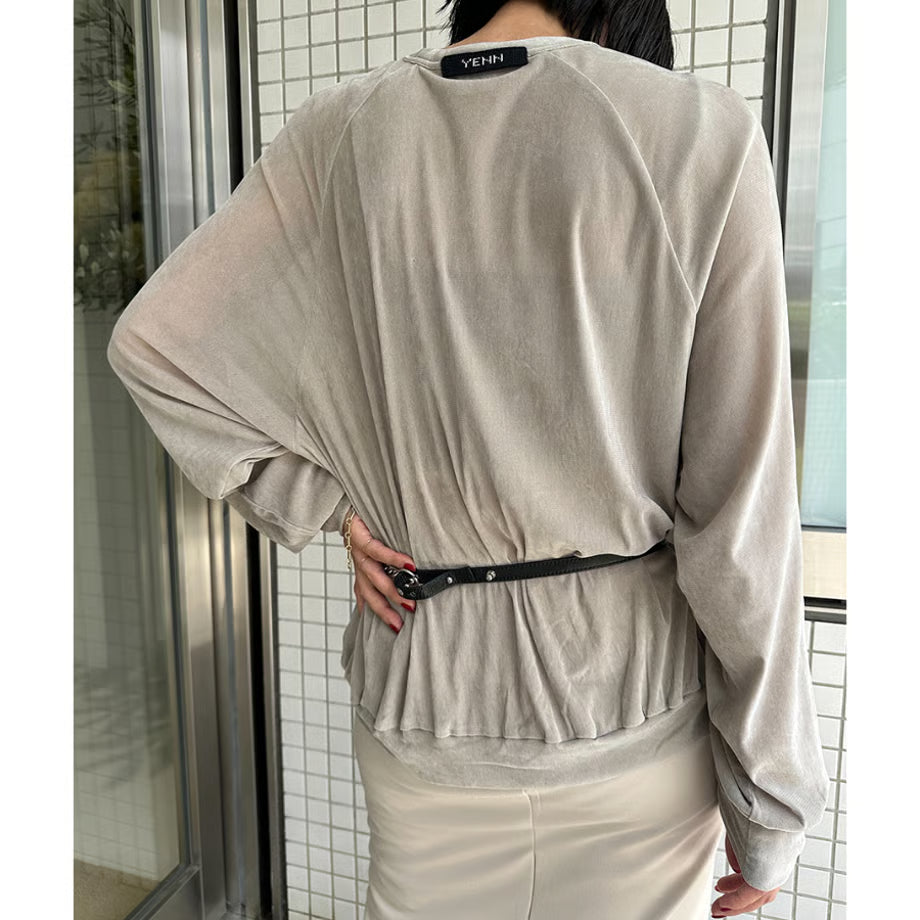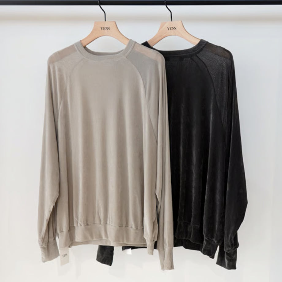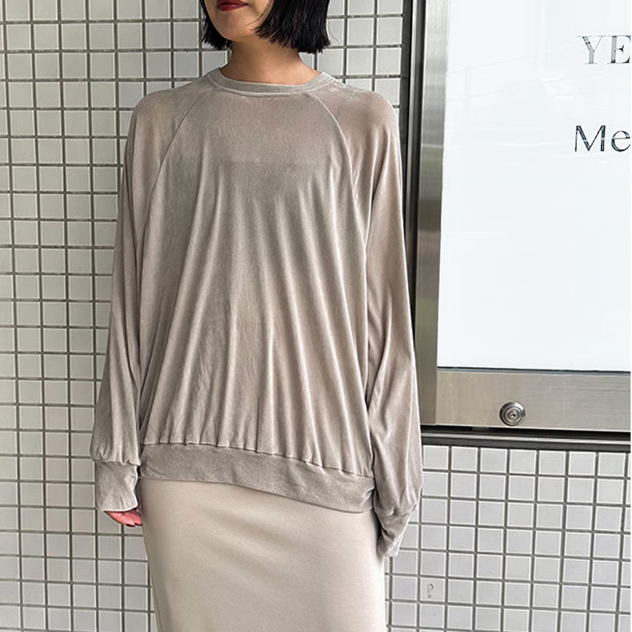 フロッキー加工を施したチュール生地を使用したラグランワイドプルオーバーです。