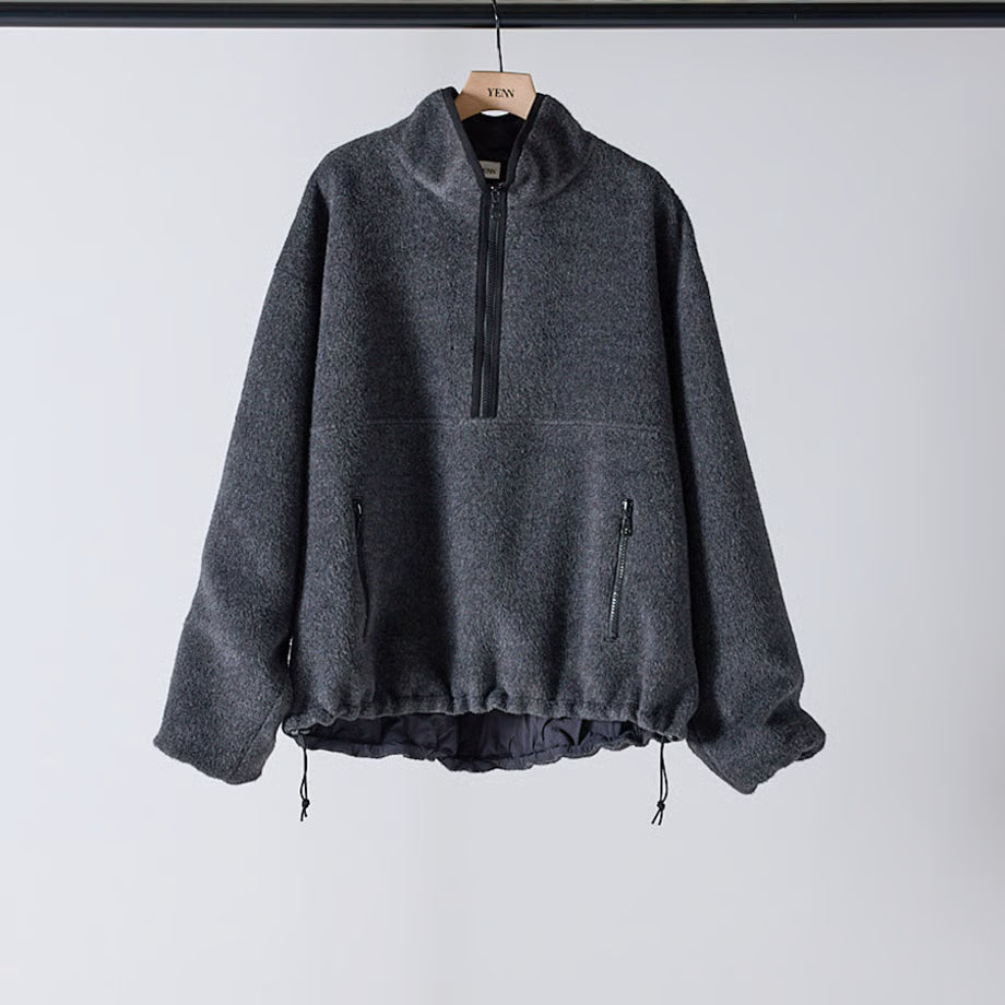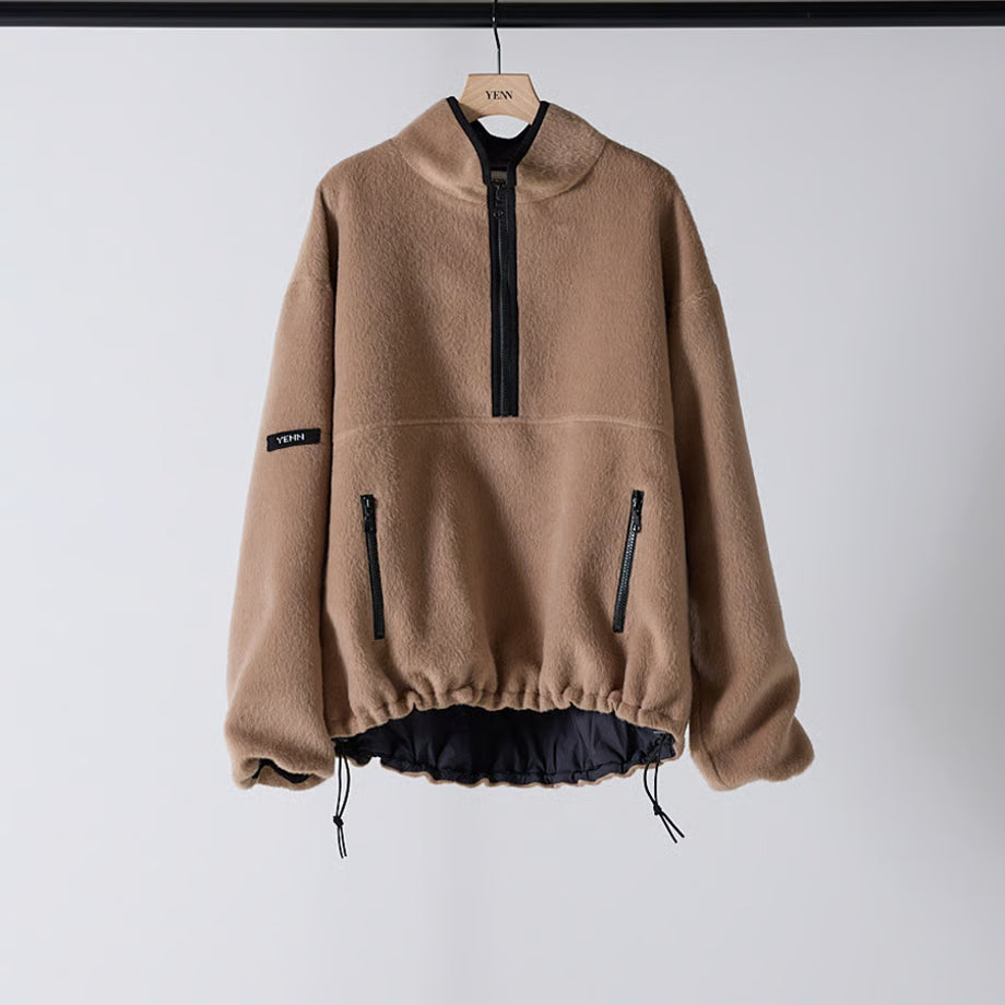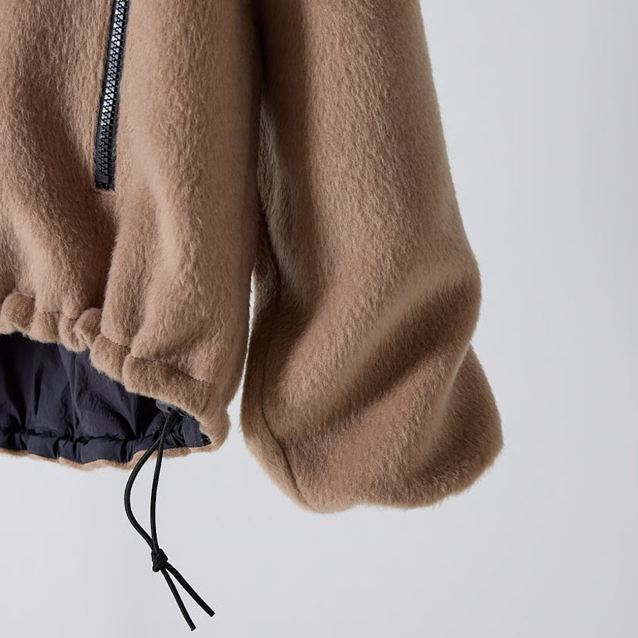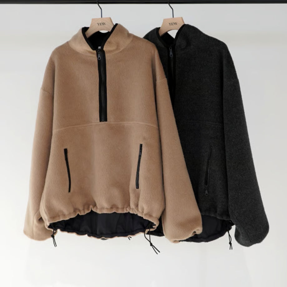 アウトドア製品にあるようなハーフジップのアウターをタウン仕様に落とし込みました。定番のファーやボアではなく