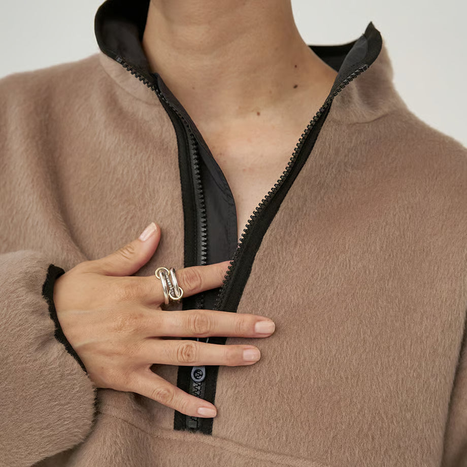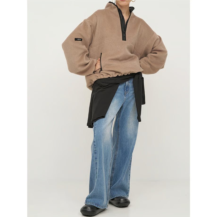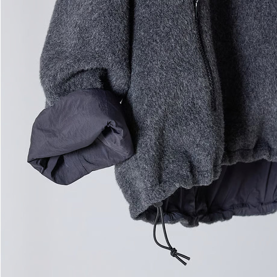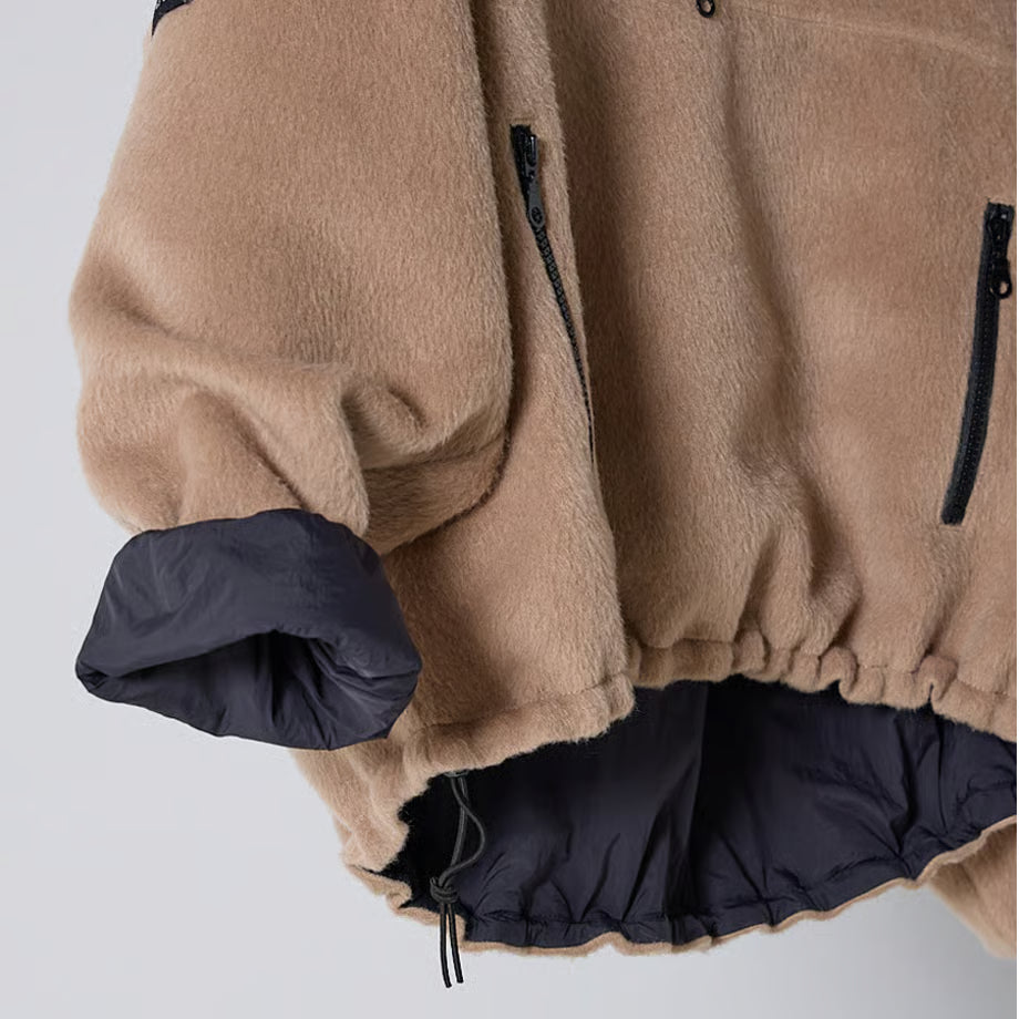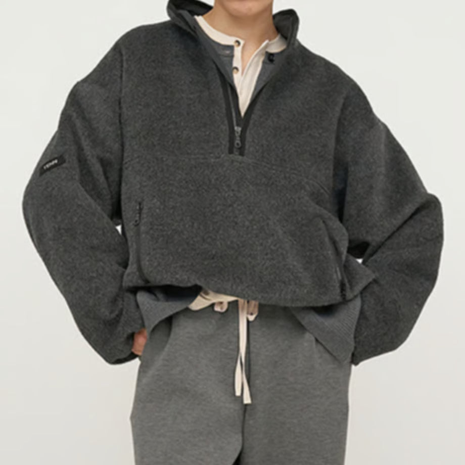 アウトドア製品にあるようなハーフジップのアウターをタウン仕様に落とし込みました。定番のファーやボアではなく