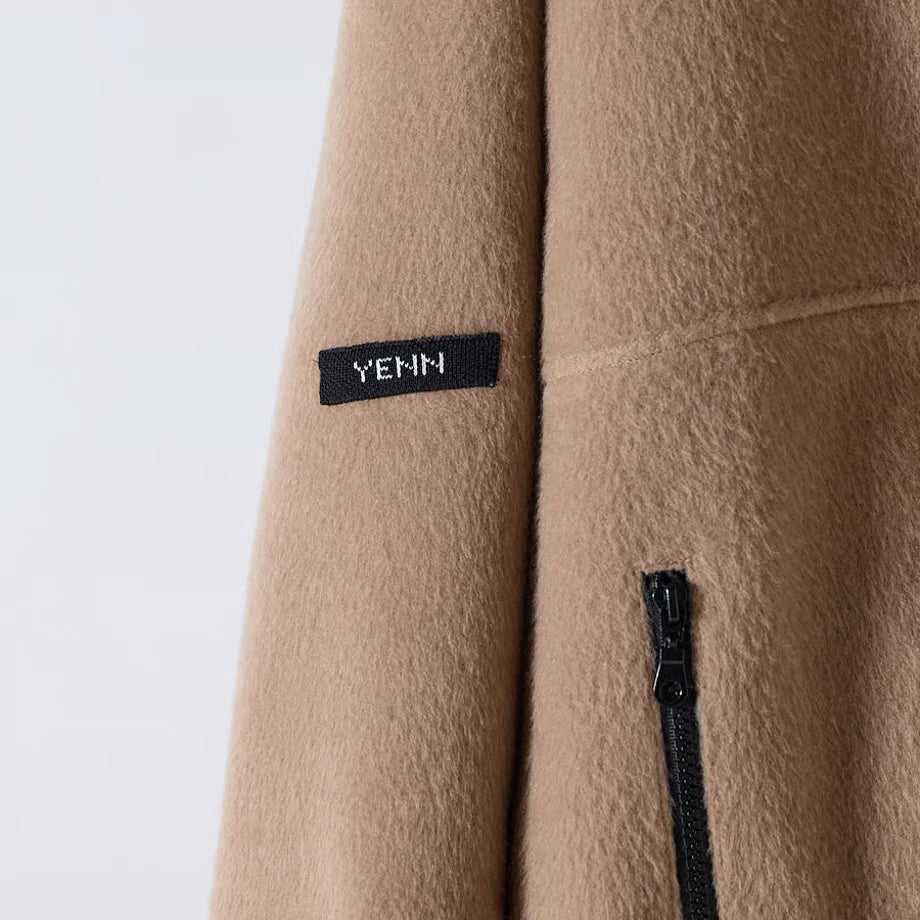 シャギー素材を使用することで、着膨れしにくくカジュアルになりすぎない大人のカジュアルアウターに。配色のトリミングテープは柔らかくストレッチのある素材を使用、実用性と着心地にこだわりました。 HENRY NECK LONG TEEとのレイヤードや、襟ぐりのあいたインナーと合わせてあえて首元を見せるスタイリングも女性らしさがプラスできておすすめです。右袖に施した“YENN”ロゴテープがポイントです。