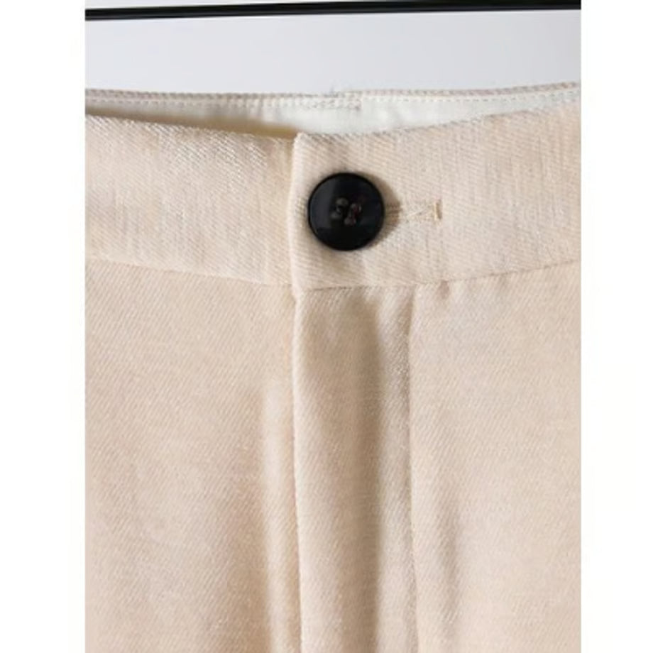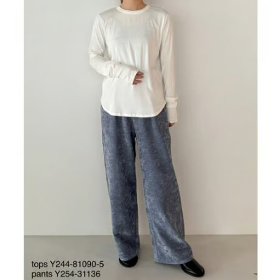 タックを寄せてウエストを絞るデザインで、おなか周りが苦しくなくリラックスして履いていただけます。