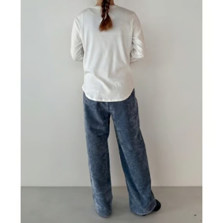 全体的にオーバーサイズのシルエットで、ウエスト位置はハイライズの設定になっています。