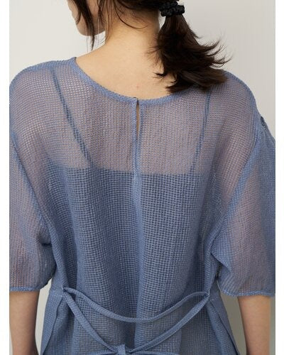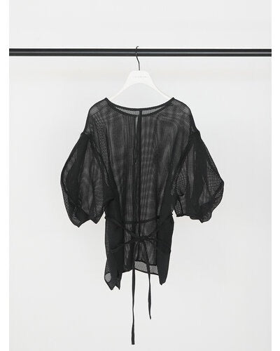 一件薄紗襯衫,袖子蓬鬆,透光性極佳。