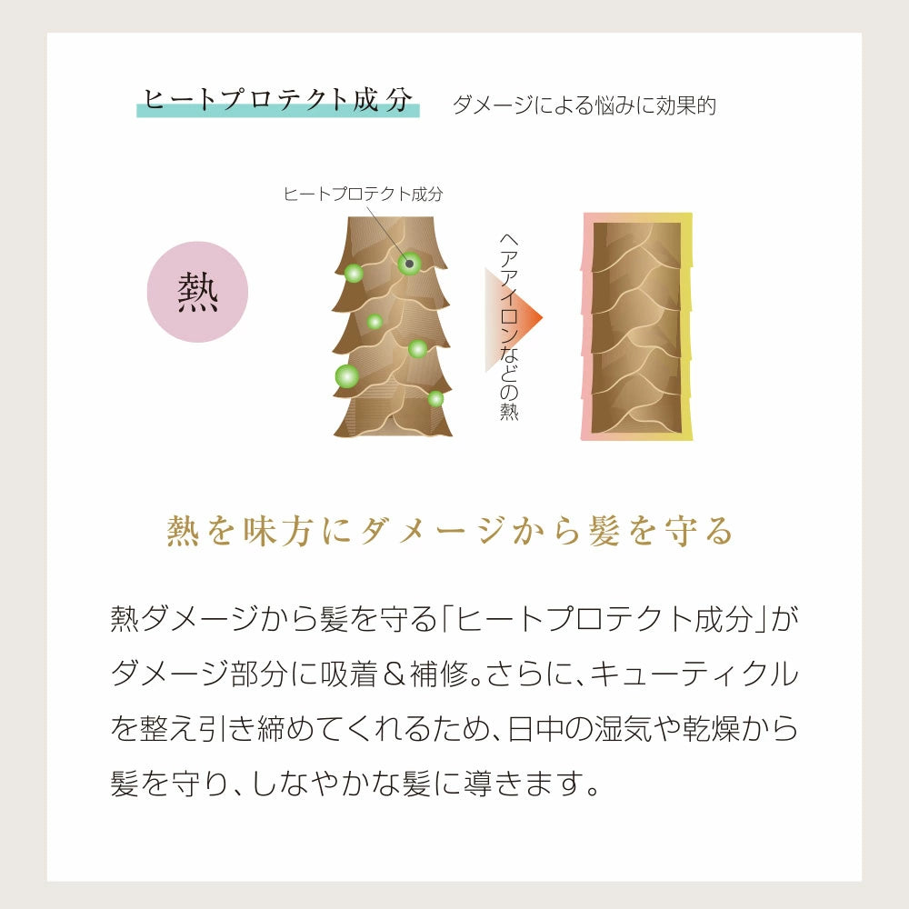 「熱保護成分」透過吸附和修復受損部位來保護頭髮免受熱損傷。