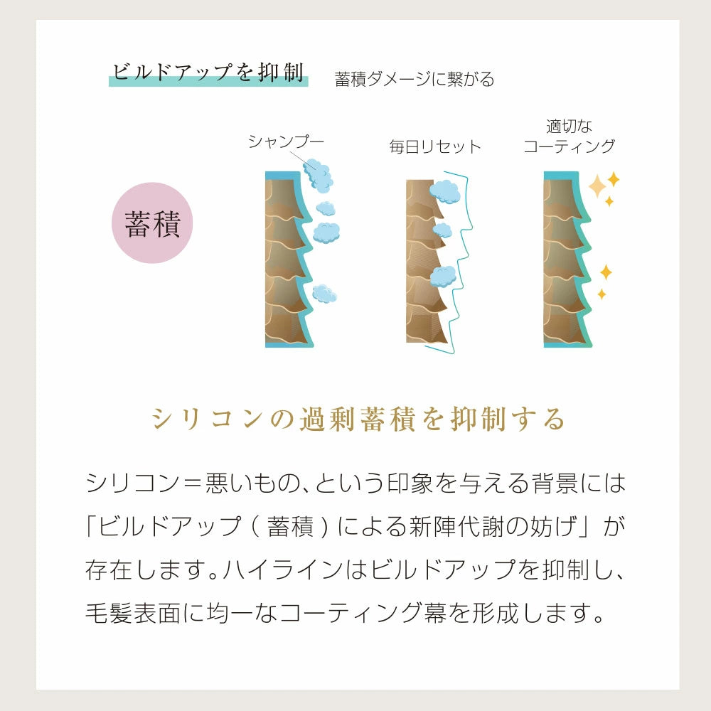 High Line 可防止毛髮堆積,並在頭髮表面形成均勻的塗層。