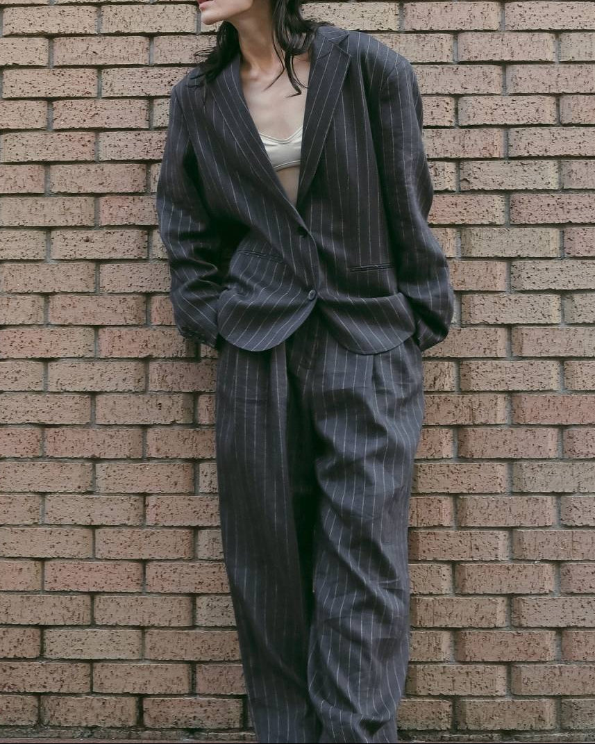 我們也建議搭配同材質的亞麻外套,打造更具男性魅力的造型。