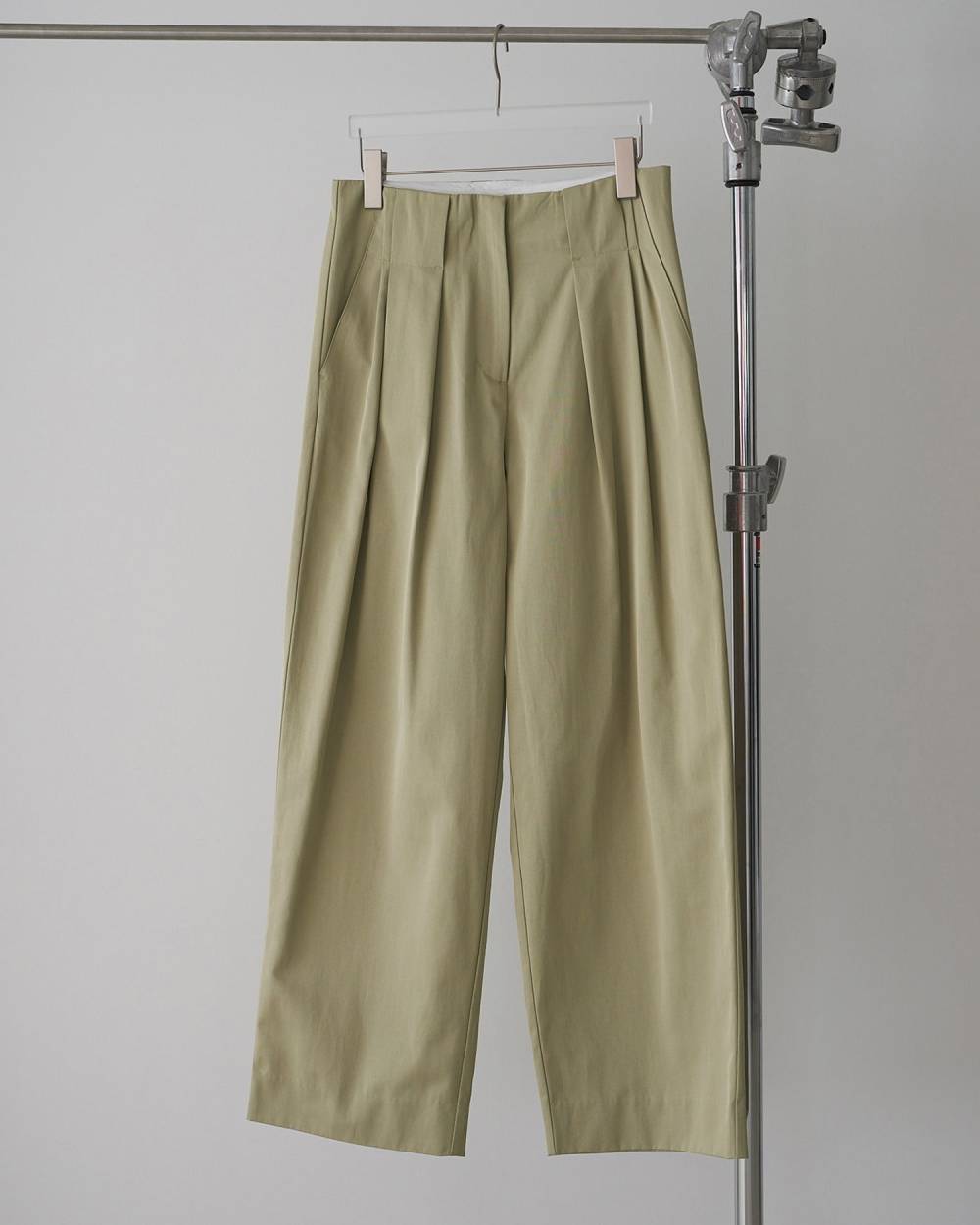 採用柔軟挺括的斜紋布料製成的寬腿褲。