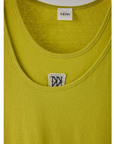 這款不對稱背心採用100%美國棉質布料,質地輕盈。其立體剪裁設計,宛如兩件疊穿的背心,打造出簡約而不失格調的造型。外層背心採用醒目的斜裁下擺和略微錯置的領口設計。共有三種顏色可選,其中一款飾有撞色滾邊,另一款則採用極簡設計,刻意省略了配色,每一款都呈現出不同的風格。胸前的YENN提花針織名牌,低調又不失品牌特色。這款背心既可作為內搭穿著,也可作為外套穿著。