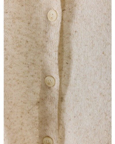 這款上衣採用清爽的亞麻混紡紗線,針織緊密,輕薄透氣卻不失質感,經過改良,夏季穿著涼爽舒適,同時保留了其標誌性的圓潤廓形。您可以將其作為上衣穿著,扣上前襟;也可以內搭T卹或連身裙,略顯緊湊的版型為各種造型增添清新感。左胸的原創品牌標誌吊墜低調而精緻。此外,它還配有側袋。